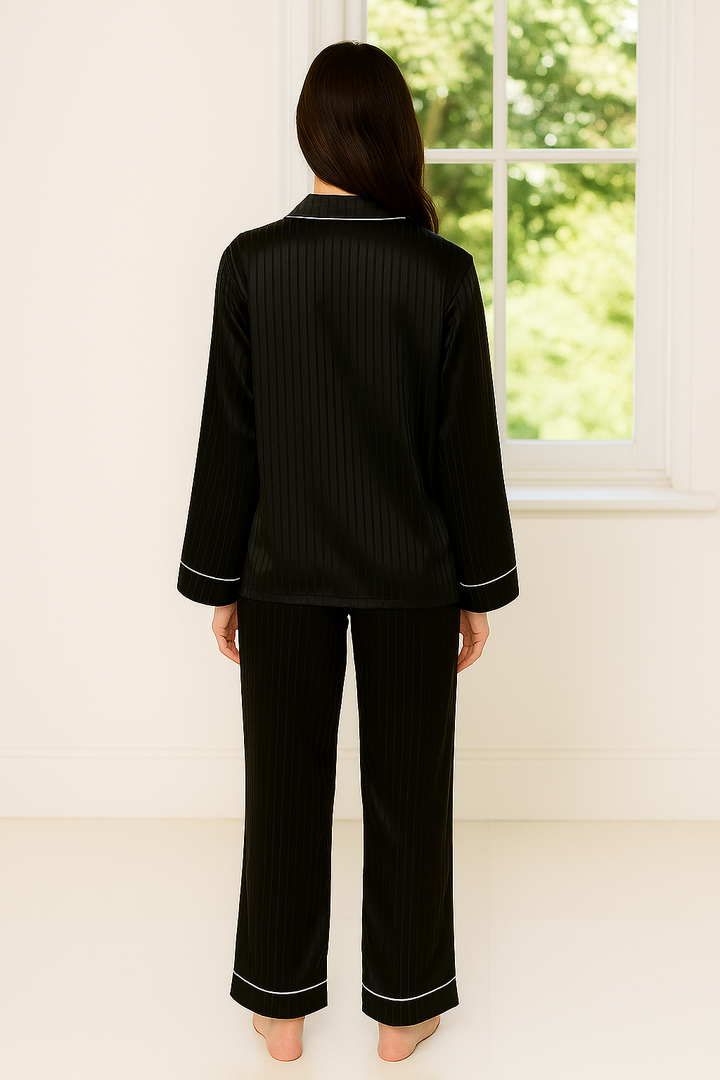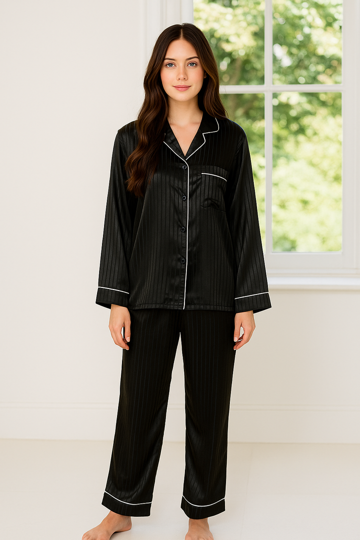 This nightwear features a comfortable, relaxed fit that allows for easy movement, and a breathable and luxurious feel. Its soft texture ensures a gentle touch on the skin. Designed with classic tailoring, it’s both durable and timeless.