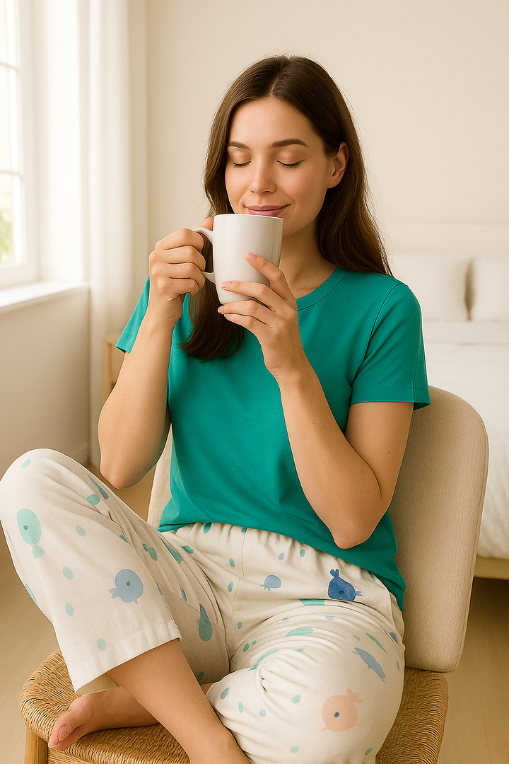 This nightwear features a comfortable, relaxed fit that allows for easy movement, and a breathable and luxurious feel. Its soft texture ensures a gentle touch on the skin. Designed with classic tailoring, it’s both durable and timeless.