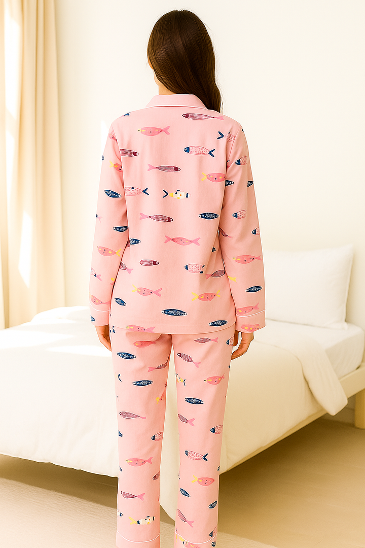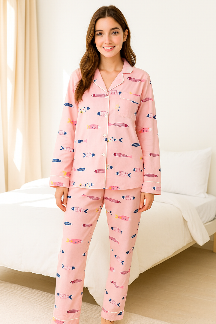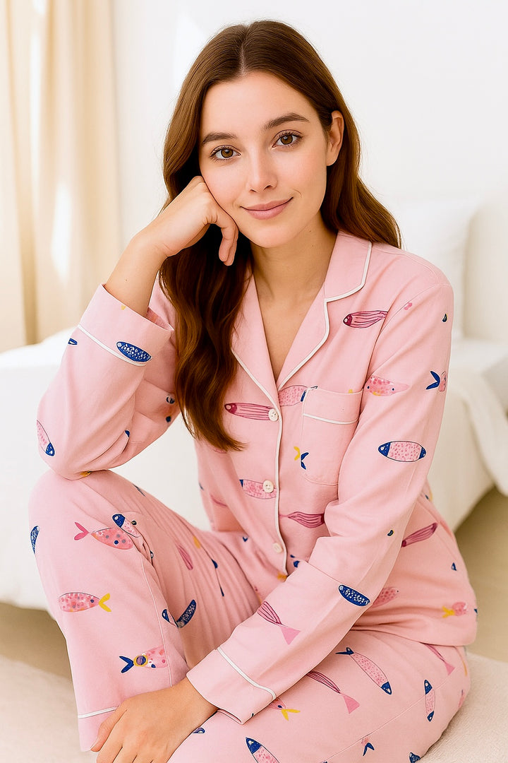 This nightwear features a comfortable, relaxed fit that allows for easy movement, and a breathable and luxurious feel. Its soft texture ensures a gentle touch on the skin. Designed with classic tailoring, it’s both durable and timeless.