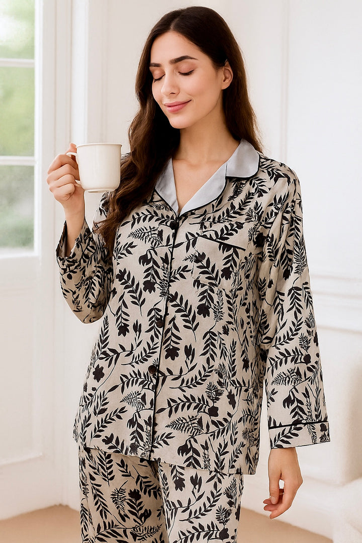 This nightwear features a comfortable, relaxed fit that allows for easy movement, and a breathable and luxurious feel. Its soft texture ensures a gentle touch on the skin. Designed with classic tailoring, it’s both durable and timeless.