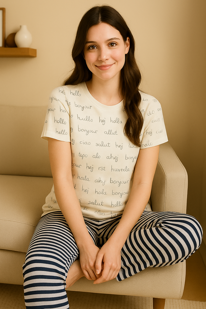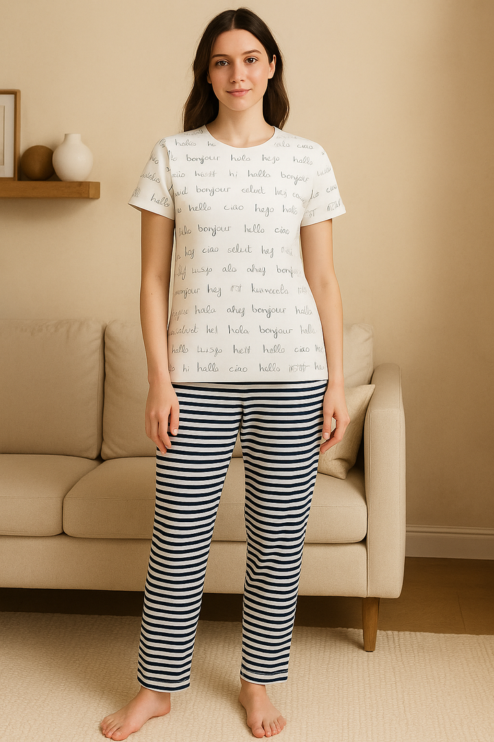 This nightwear features a comfortable, relaxed fit that allows for easy movement, and a breathable and luxurious feel. Its soft texture ensures a gentle touch on the skin. Designed with classic tailoring, it’s both durable and timeless.