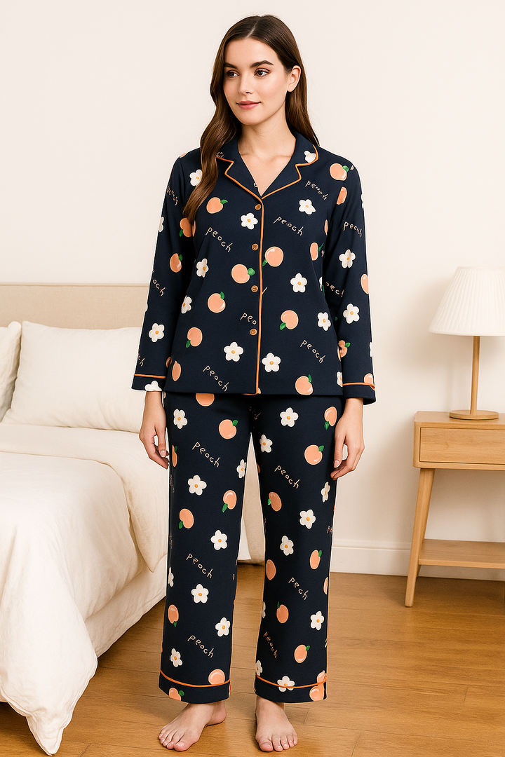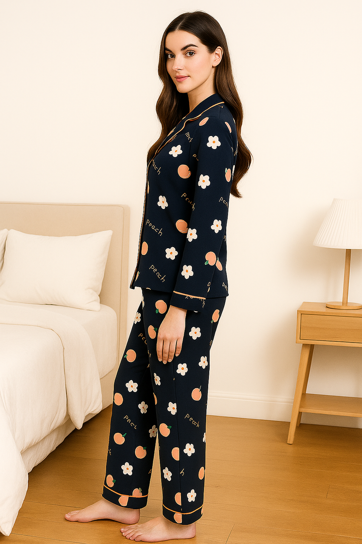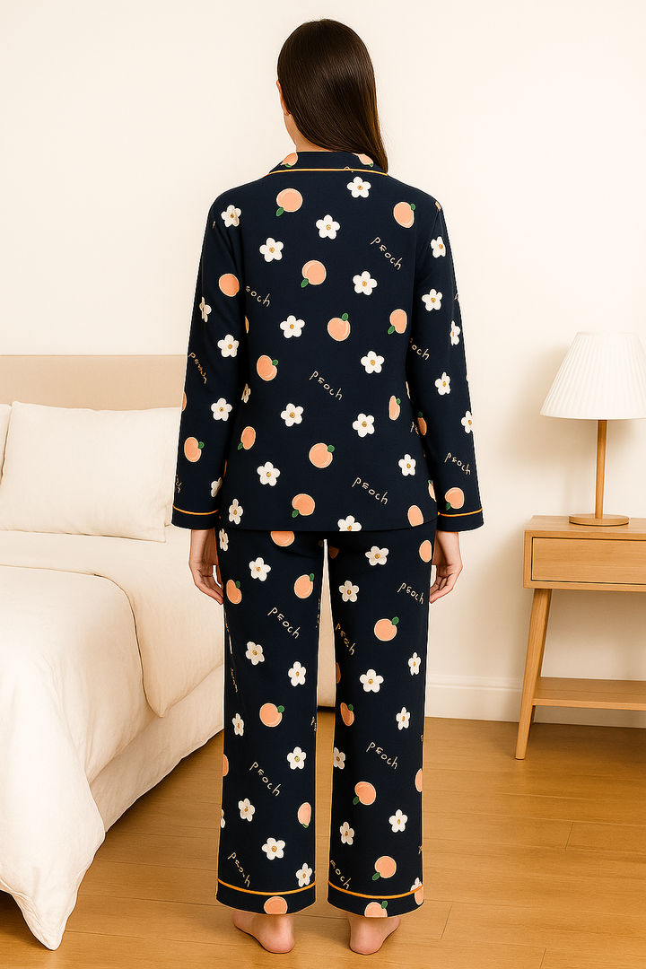 This nightwear features a comfortable, relaxed fit that allows for easy movement, and a breathable and luxurious feel. Its soft texture ensures a gentle touch on the skin. Designed with classic tailoring, it’s both durable and timeless.