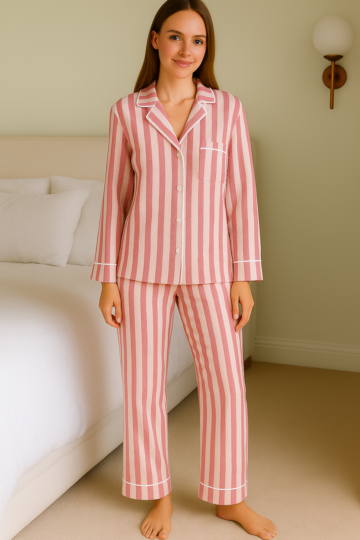 This nightwear features a comfortable, relaxed fit that allows for easy movement, and a breathable and luxurious feel. Its soft texture ensures a gentle touch on the skin. Designed with classic tailoring, it’s both durable and timeless.