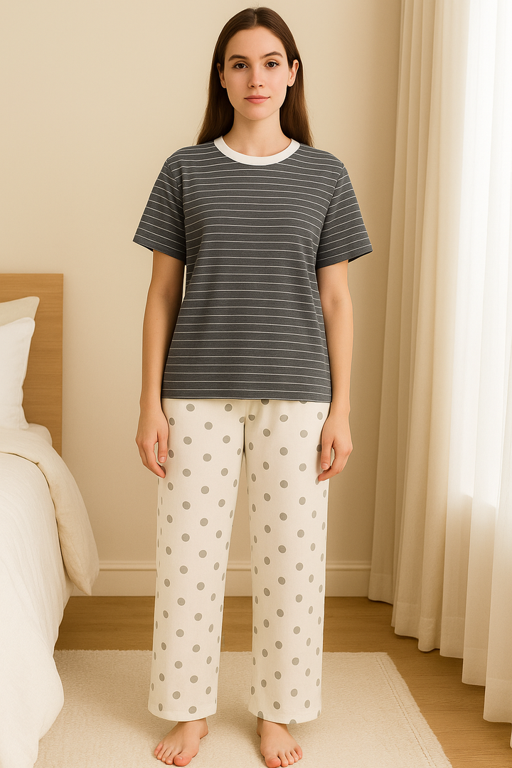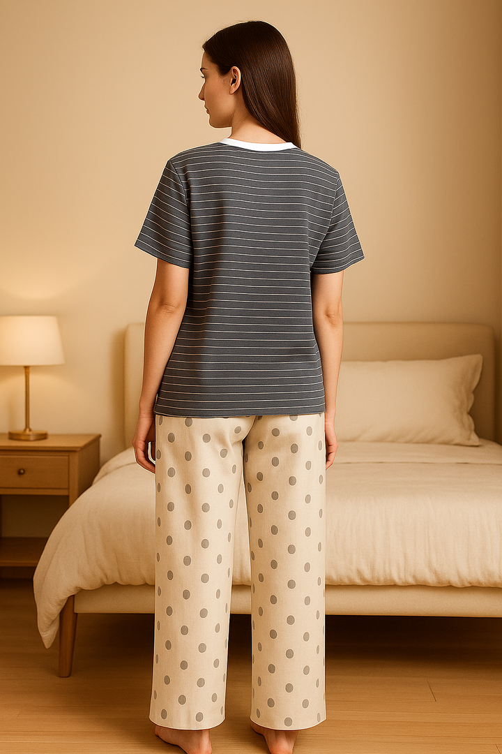 This nightwear features a comfortable, relaxed fit that allows for easy movement, and a breathable and luxurious feel. Its soft texture ensures a gentle touch on the skin. Designed with classic tailoring, it’s both durable and timeless.