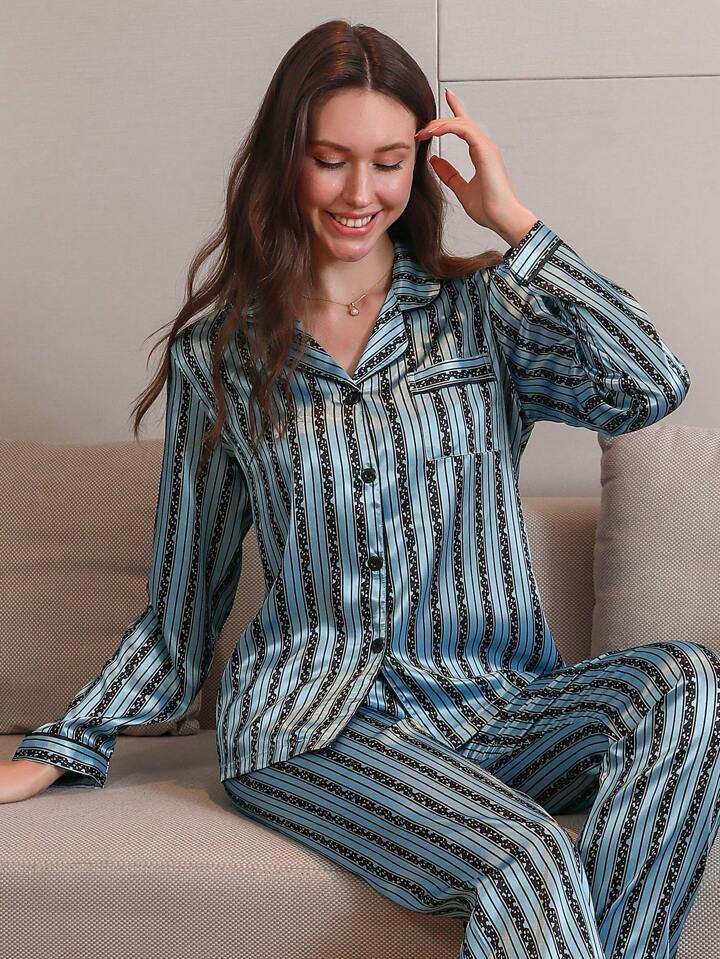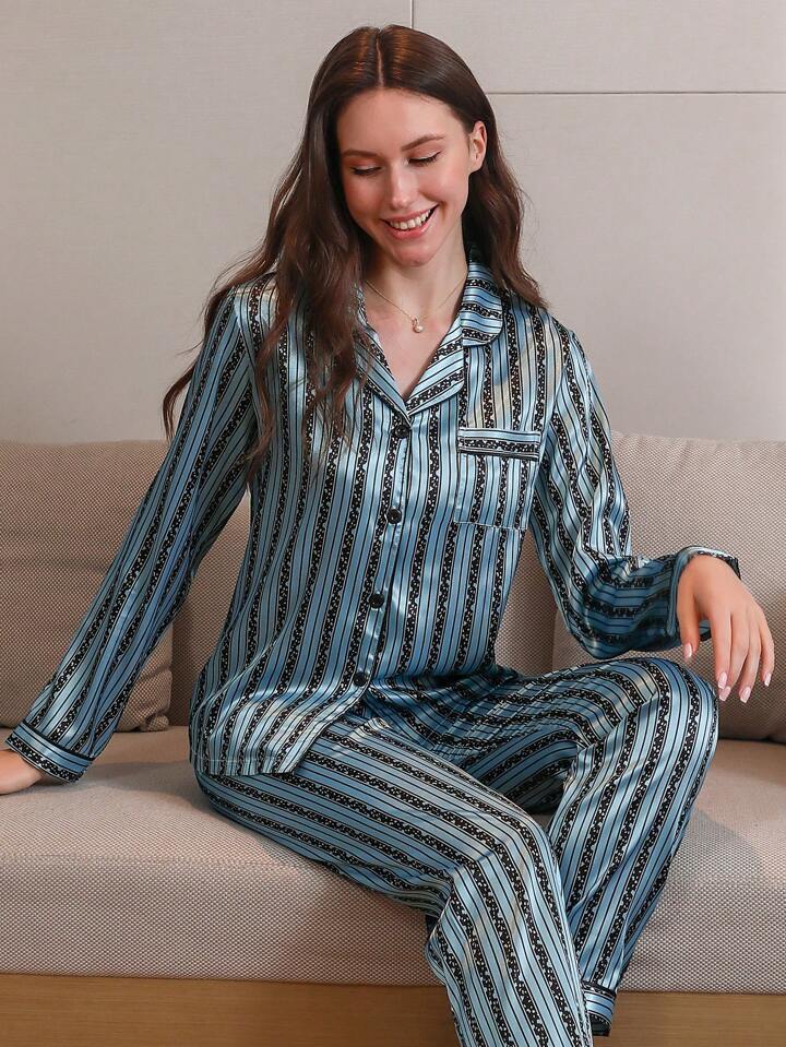 This nightwear features a comfortable, relaxed fit that allows for easy movement, and a breathable and luxurious feel. Its soft texture ensures a gentle touch on the skin. Designed with classic tailoring, it’s both durable and timeless.