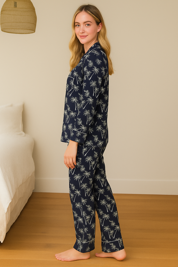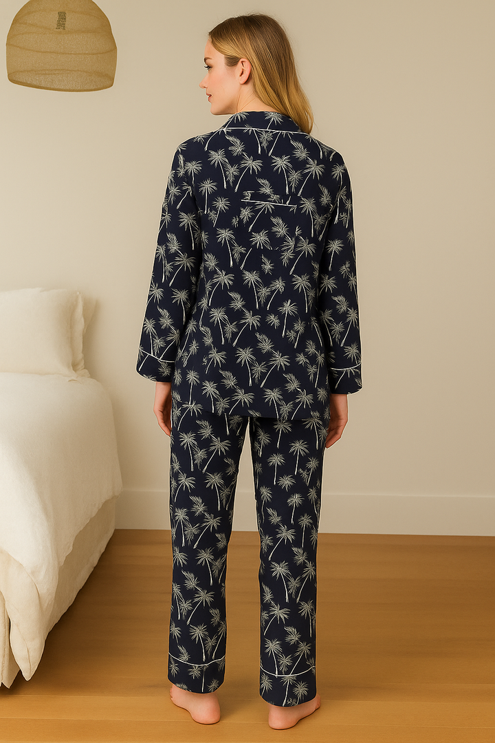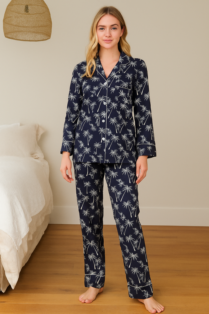 This nightwear features a comfortable, relaxed fit that allows for easy movement, and a breathable and luxurious feel. Its soft texture ensures a gentle touch on the skin. Designed with classic tailoring, it’s both durable and timeless.